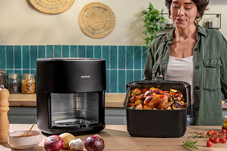 Cecofry&Grill Duoheat 10000 Freidora de aire con doble resistencia para dorado perfecto y sabor de parrilla en carnes, capacidad de 10 litros, potencia de 2800 W para platos saludables y pared divisoria móvil para optar entre dos cestillos con temperatura dual o convertirse en una sola cubeta.